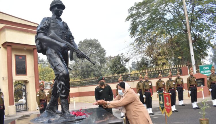 Jammu: Homage was paid to Lt Triveni Singh, Ashok Chakra(P) at Triveni Dwar in Pathankot by Officiating Commander Pathankot Sub Area and family members of the Fallen Hero.