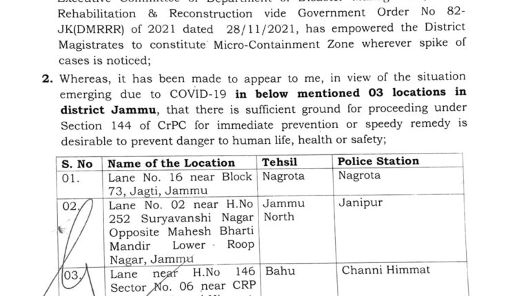COVID-19 | Declaration of Micro Containment Zone in #Jammu J&K / Ladakh By Editor Last updated Jan 8, 2022 192 Share 192 Share