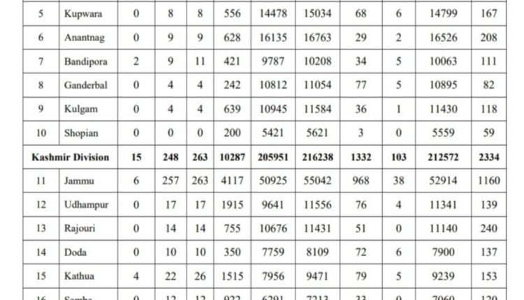Today’s case in jammu and kashmir 655, Jammu division 392, Kashmir division 263, Total case 343965, Total recovered 336446, Total deaths 4537, Also 03 COVID deaths have been reported. 01 from Jammu division and 02 from Kashmir division.