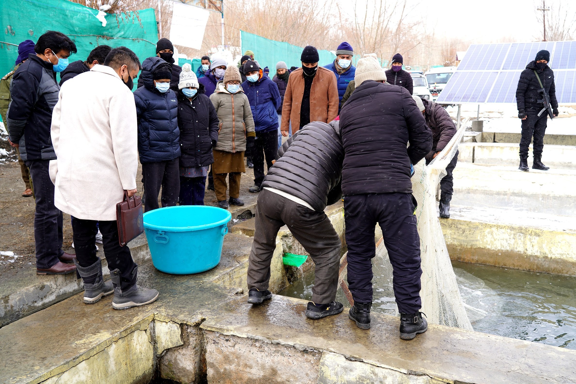 LADAKH | Lt Governor R K Mathur visited Trout Rearing Unit at Khachan. He advised the concerned officials of the Fisheries Dept to explore the potential of fisheries in the district & fix numerical growth targets