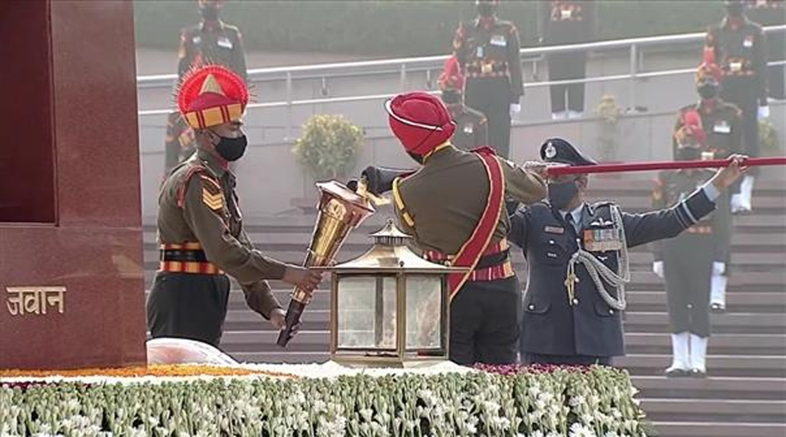 The torch was then taken to the national war memorial by a ceremonial guard from Guards Regiment of the Indian Army.