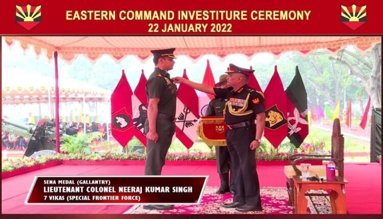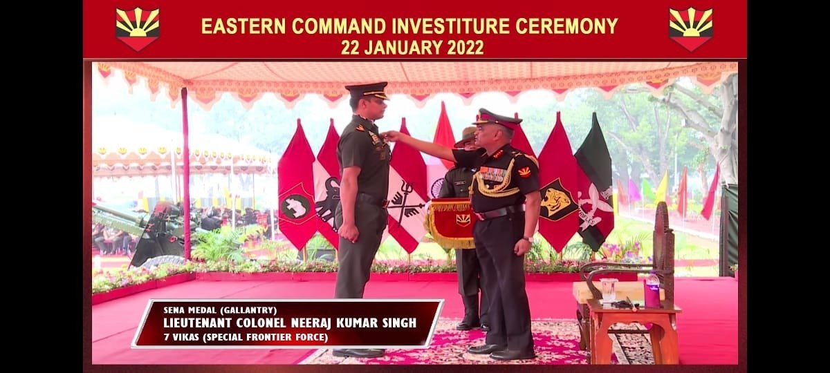 Lt Col Neeraj Singh of 7 Vikas (Special Frontier Force) was today awarded Sena Medal Gallantry for his role in an operation to capture a strategic height across the Chushul valley in Eastern Ladakh on August 30th, 2020