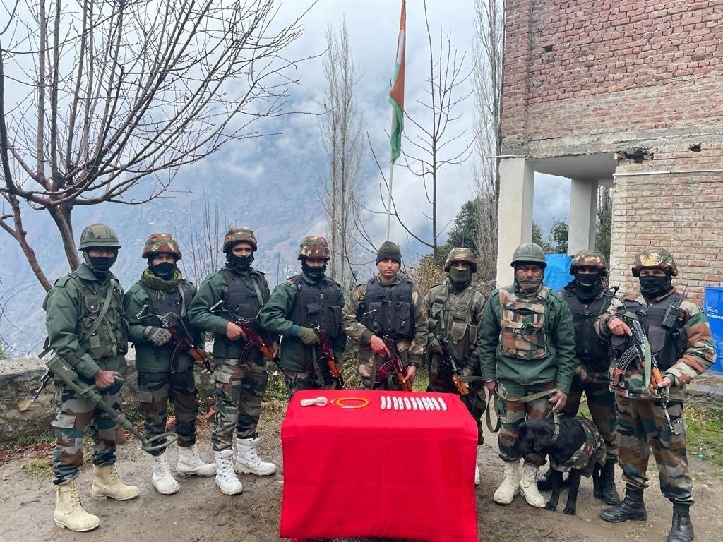 A joint team of Indian Army & J&K Police recovered approximately 1.3 kg of commercial-grade explosives in general area Nagar Nala Dul in Kishtwar on January 24. The recovery included 11 sticks of commercial-grade explosives, one detonator & detonating wire: White Knight Corps