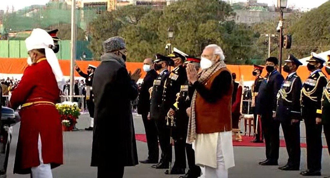 DELHI | Prime Minister Narendra Modi greets president Ram Nath Kovind at Vijay Chowk. Nation By Editor Last updated Jan 29, 2022 130 Share 130 Share