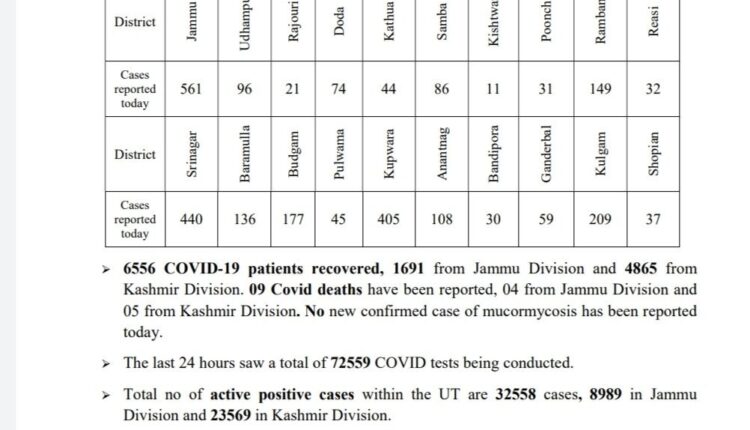 Jammu Kashmir Reports 2751 fresh COVID-19 cases (1105 from Jammu Division and 1646 from Kashmir Division), 09 COVID deaths