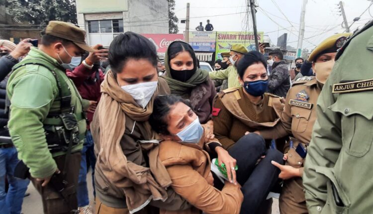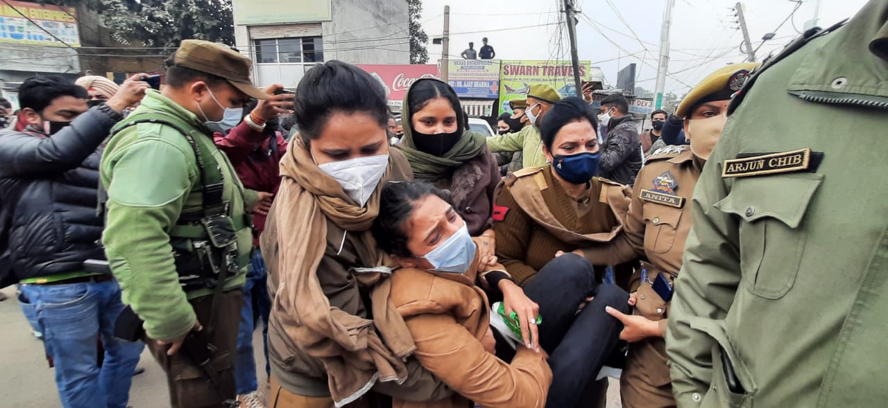 J&K Police Border Battalion aspirants expressed resentment by blocking the Bikram Chowk bridge over the re-advertisement of old notification for examination by the Government. In this regard, the Police disperses the crowd and detained the protestors.