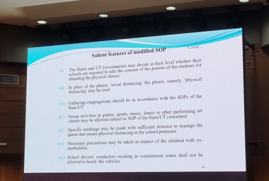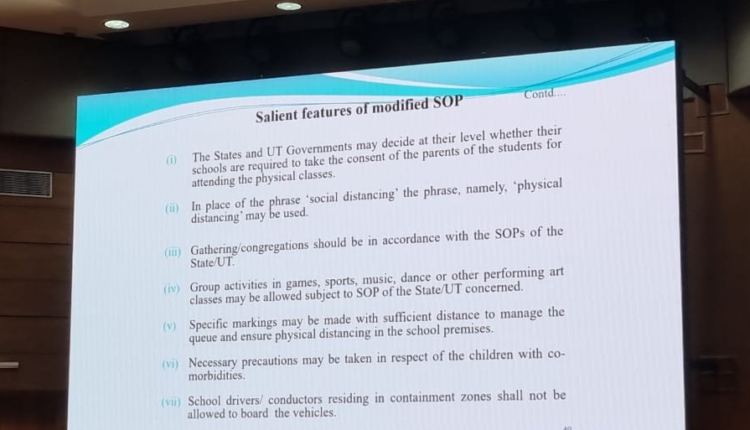 Revised guidelines for health&safety protocols for reopening of schools&learning with social distancing state-States to decide whether schools required to take consent of students’ parents for attending physical classes,group activities to be done as per SOPs: Education Ministry