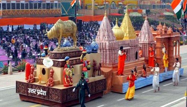The tableau of Uttar Pradesh was based on the theme ‘One District One Product and Kashi Vishwanath Dham’.