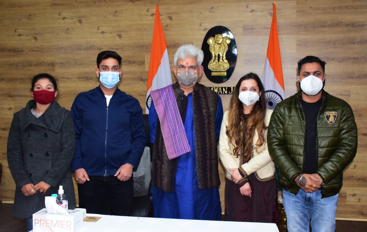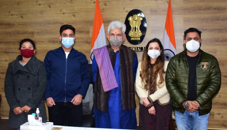 J&K | LG Manoj Sinha met amazingly talented artists from J&K UT- Sars Bharti, Reema Devi, Rajendra Kalotra & Suhaib Kandoo, who lent their voice to the magical song ‘Pyaara Jammu Kashmir’ along with renowned Bollywood playback singers.