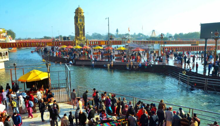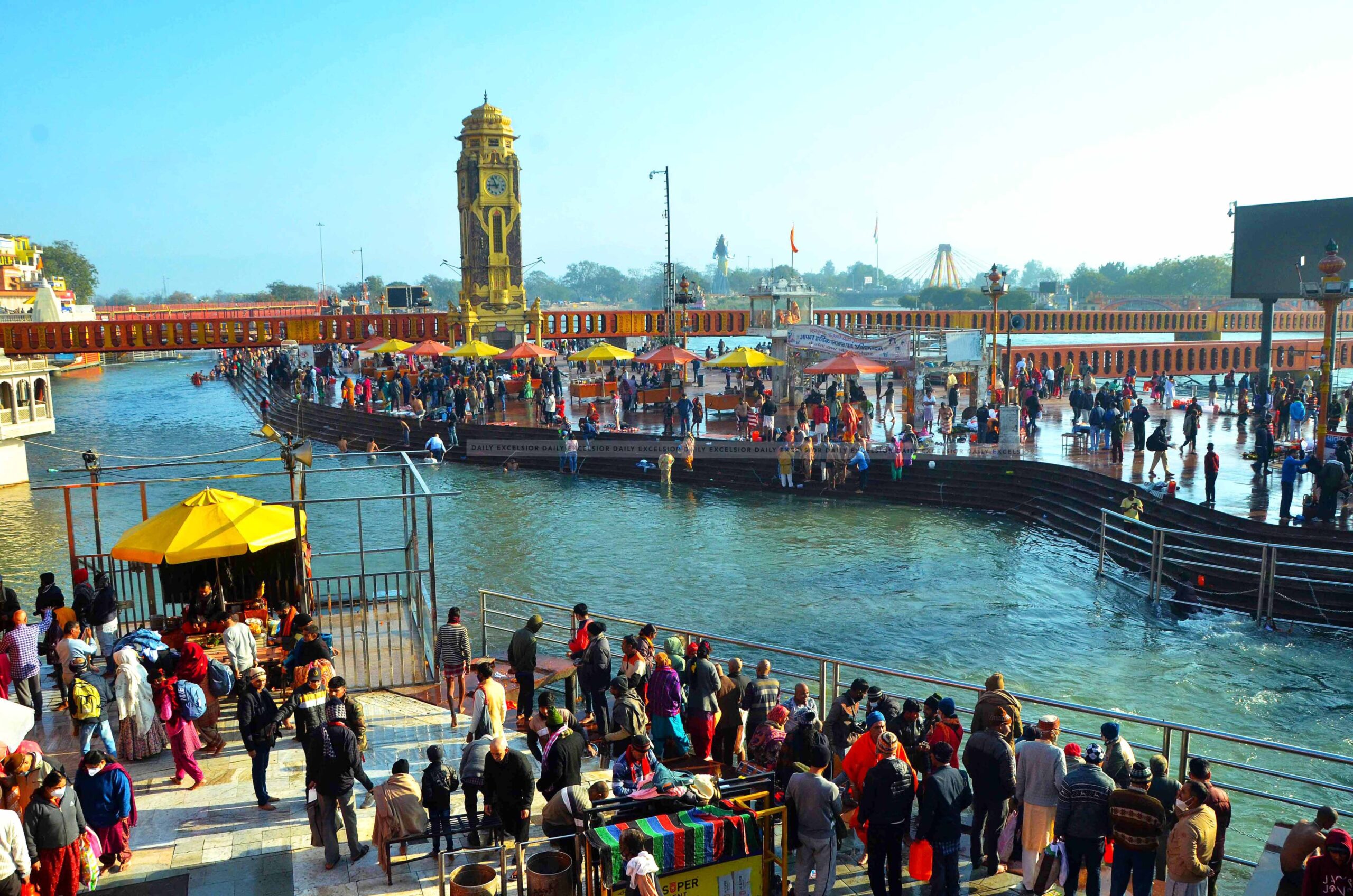 HARIDWAR | Devotees taking a holy dip on the occasion of Basant Panchami at Har Ki Pauri in Haridwar.