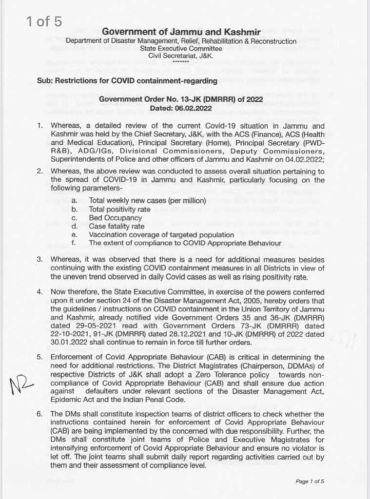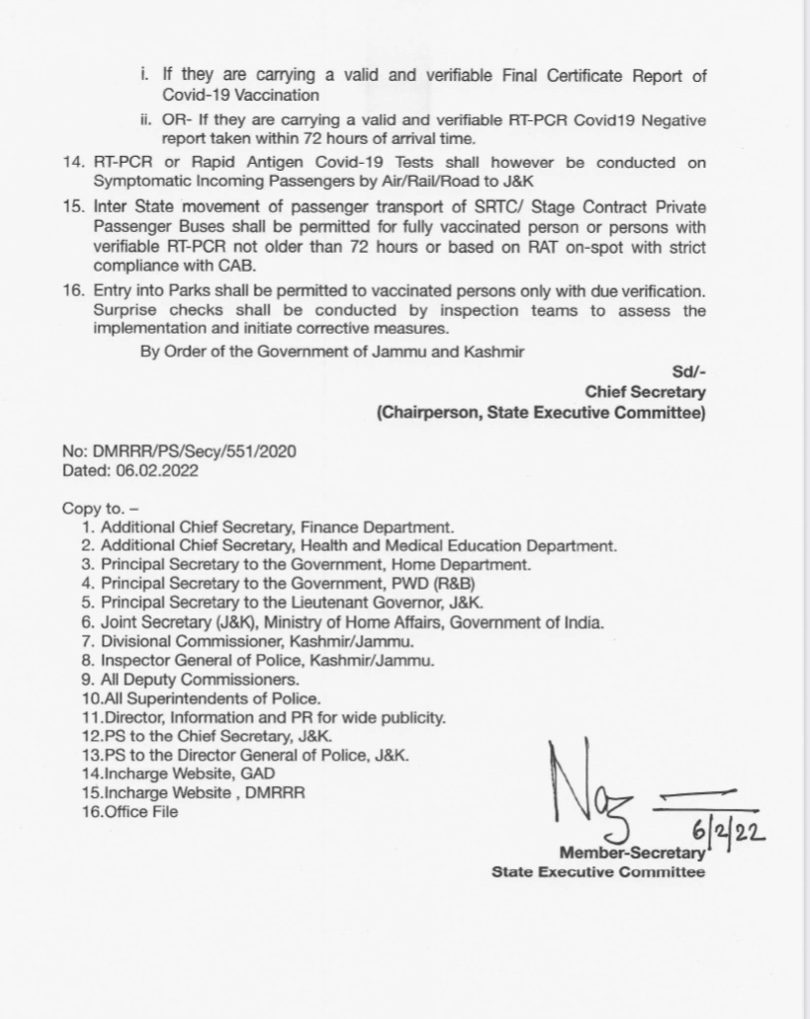 The copy of instructions issued by State Executive Committee of the J&K’s Department of Disaster Management, Relief, Rehabilitation and Reconstruction is as follows: