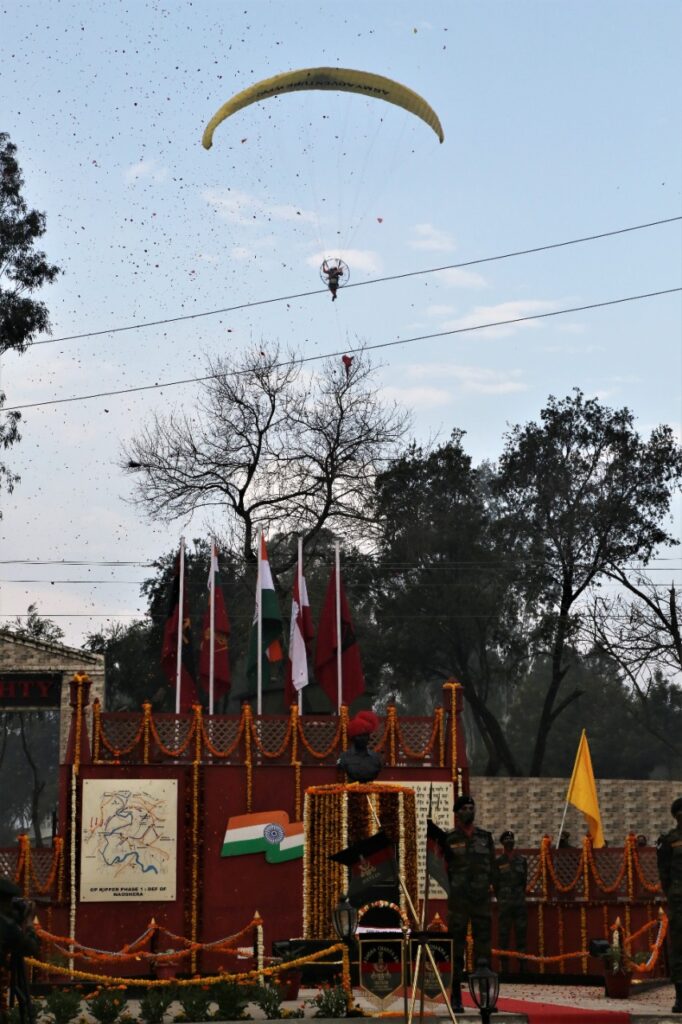 Major General Rajeev Puri, GOC Ace of Spades  Division along with a large number of military and civil dignitaries and local populace of Naushera town laid wreath at the war memorial.