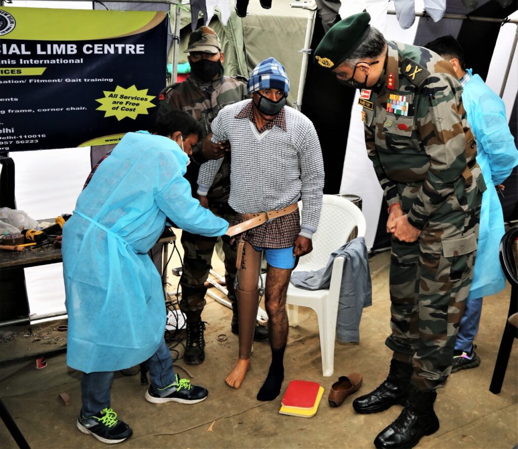 During the medical camp wheel chairs, artificial limbs, crutches, hearing aids and blind sticks were distributed to the specially a led villagers. Eye screening by renowned Retina specialist from Rotary Eye Hospital was also organised for free check up of the locals.