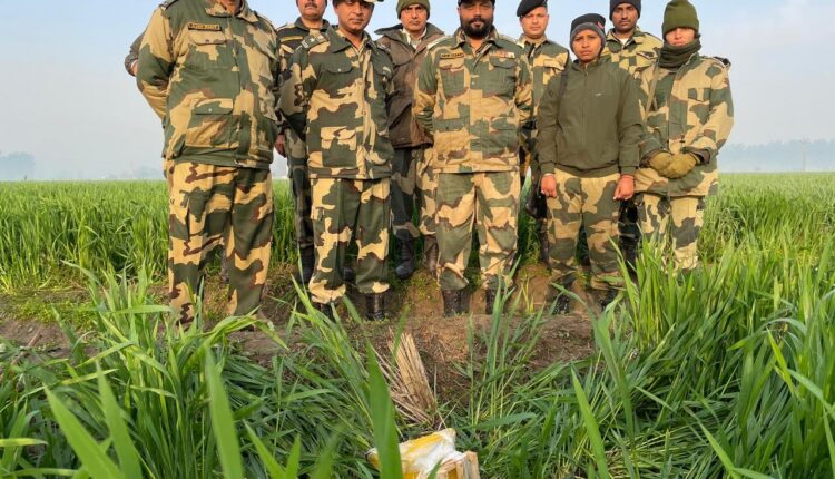 Punjab | Today at about 12:50 am, troops in Panjgrain heard buzzing of suspected flying object coming from Pakistan side to India. Troops fired upon the drone. During search in village Ghaggar & Singhoke, 2 packets of yellow colour with suspected contraband recovered so far: BSF