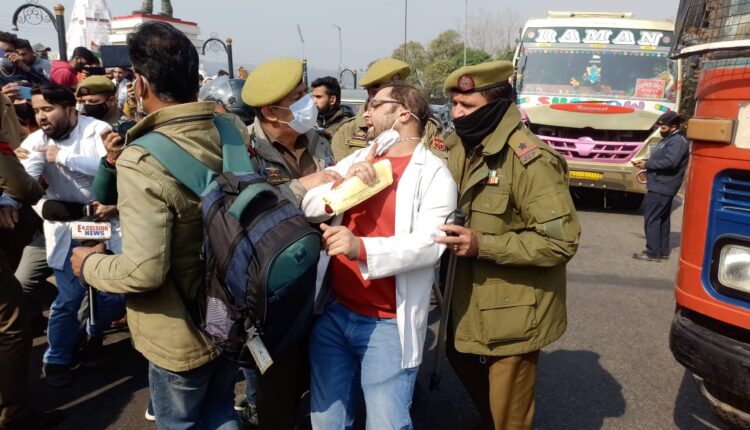 The protesters, both men and women, assembled under the banner of Dental Surgeons Association J&K at Dogra chowk and tried to block the vital Tawi bridge near the statue of Maharaja Hari Singh when police moved in and detained them, the police officials said.