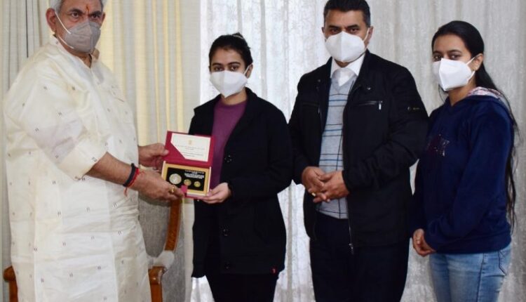 Jammu, February 14: Lieutenant Governor Manoj Sinha today felicitated young Chess Champion Arushi Kotwal at Raj Bhavan.