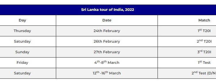 BCCI announces a change in schedule for the upcoming Sri Lanka Tour of India. Lucknow will now host the first T20I while the next 2 will be played in Dharamsala. The first Test will now be held in Mohali from March 4-8 and the 2nd Test will be played from March 12-16 in Bengaluru