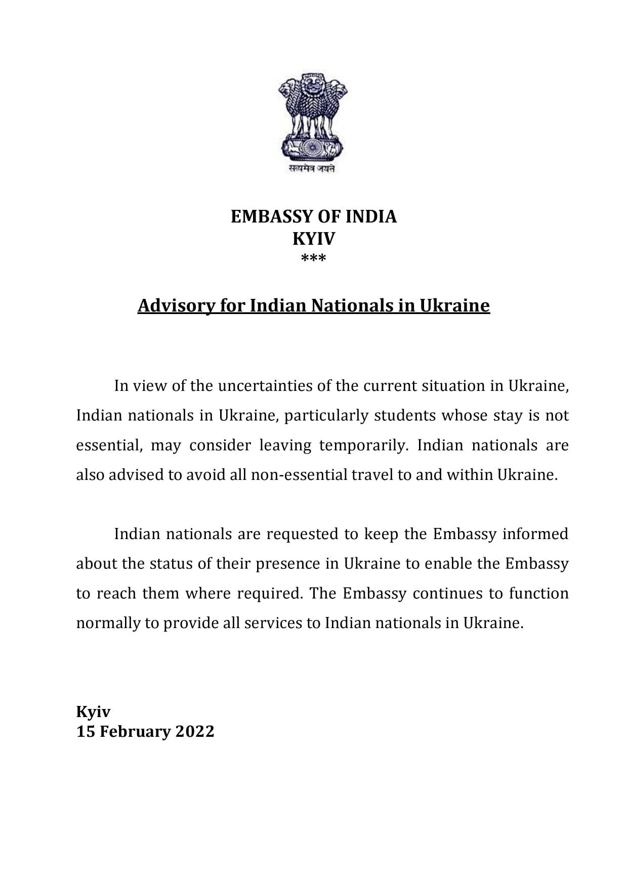 Ukraine crisis: India says its “nationals, particularly students whose stay not essential, may consider leaving temporarily” Nation By Editor Last updated Feb 15, 2022 126 Share 126 Share