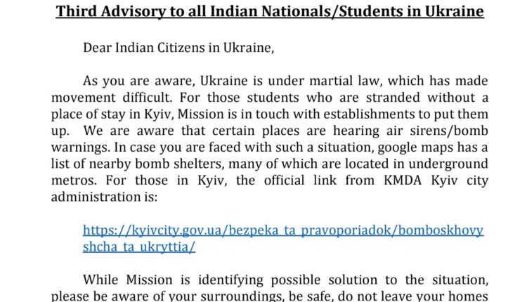 Third advisory to all Indian nationals and students in Ukraine. World By Editor Last updated Feb 24, 2022 116 Share 116 Share