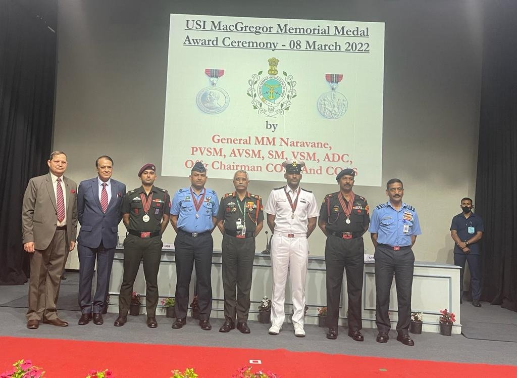 Army Chief Gen Manoj Mukund Naravane today awarded the USI MacGregor Medal Award to four defence personnel, including Maj Ajay Singh, Nb Subedar Sanjeev Kumar, MWO Anshu Tiwari and Navy official Sanjay Kumar for their extreme adventure activities. Nation By Editor Last updated Mar 8, 2022 249 Share 249 Share
