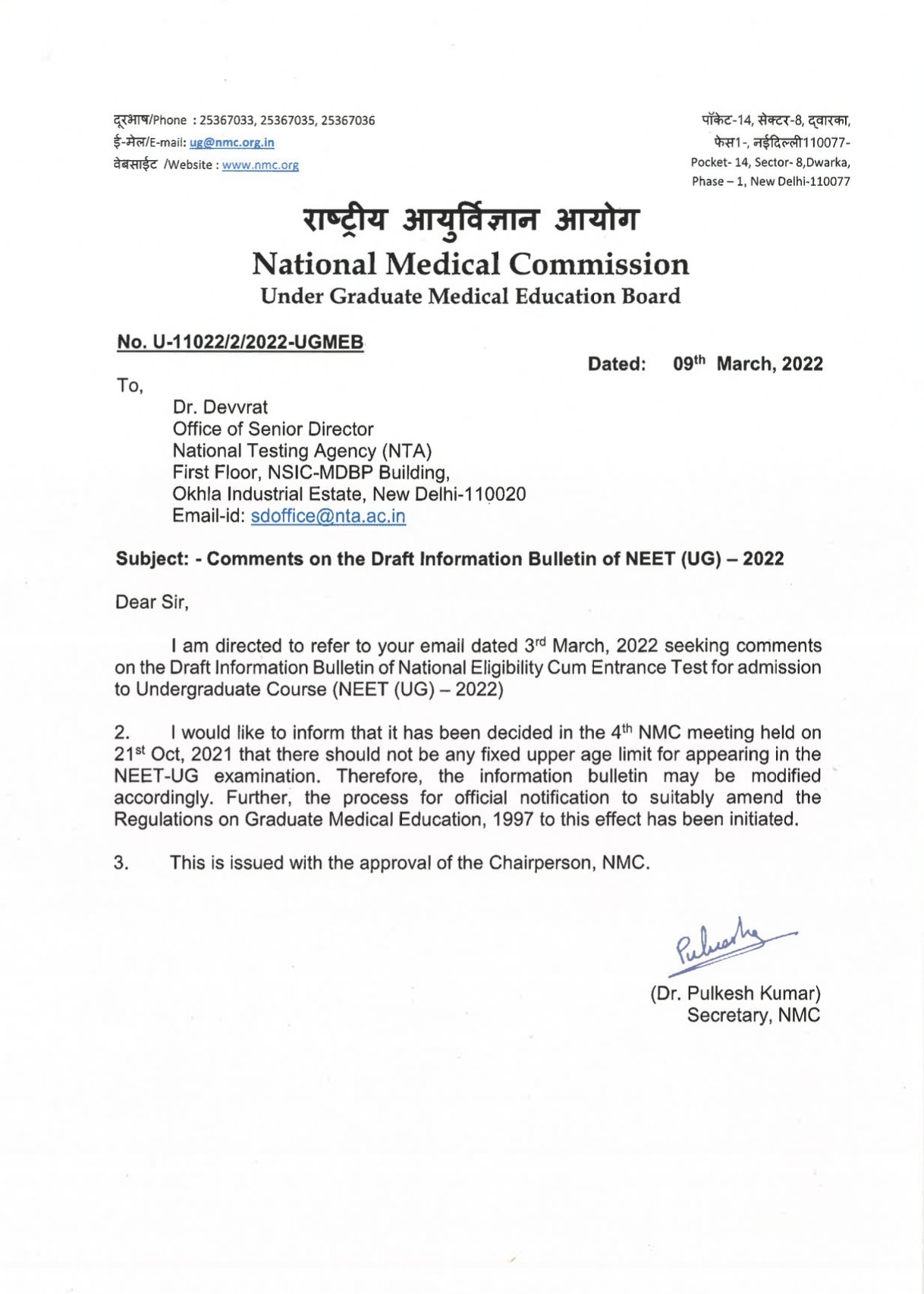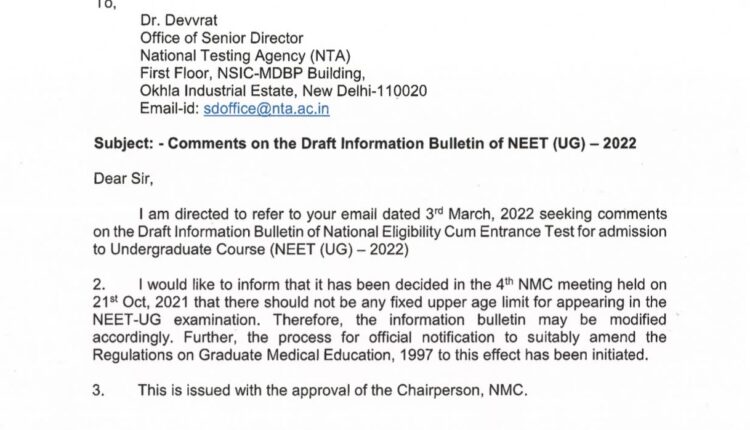Under Graduate Medical Education Board, National Medical Commission removes the fixed upper age limit for appearing in the #NEET-UG examination. Nation By Editor Last updated Mar 9, 2022 570 Share 570 Share