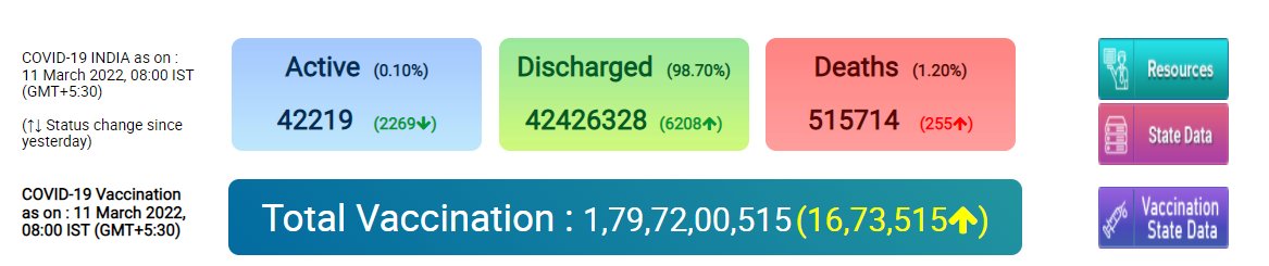 #COVID19 | India logs 4,194 new cases, 6,208 recoveries, & 255 deaths, in the last 24 hours; Active cases stand at 42,219