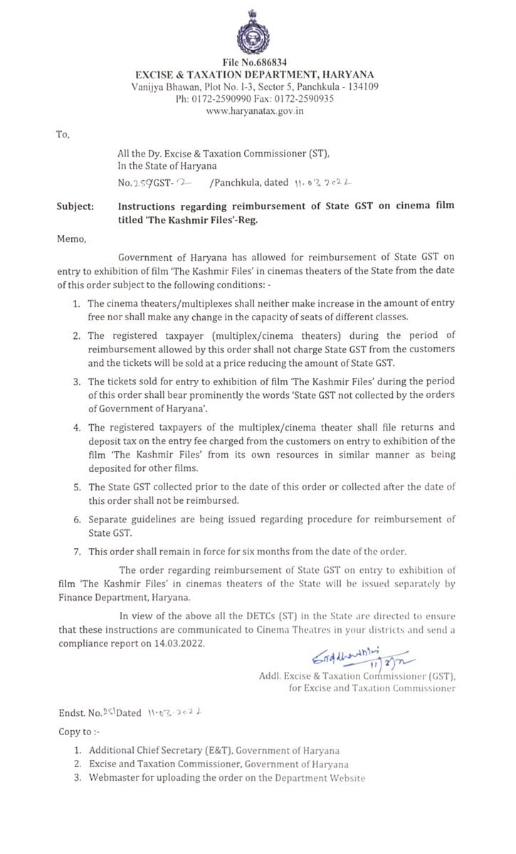 Haryana government makes the film The Kashmir Files tax-free in the state. Nation By Editor Last updated Mar 11, 2022 231 Share 231 Share
