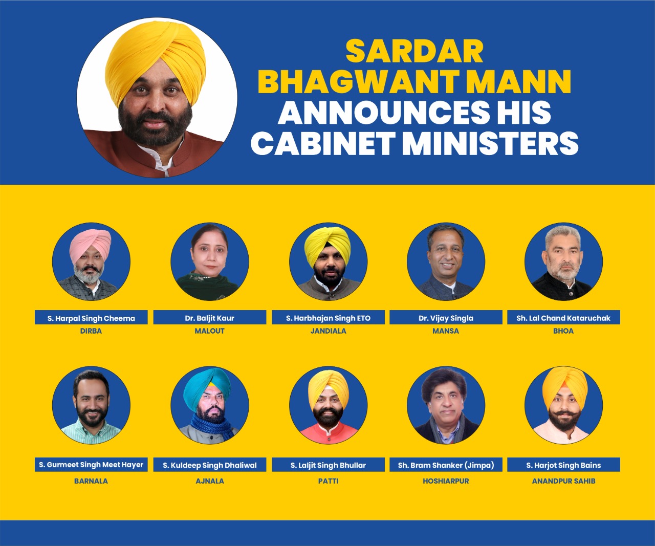 Punjab’s Cabinet expansion ceremony to induct the ministers will be held tomorrow (March 19) at 11 am in Chandigarh. Nation By Editor Last updated Mar 18, 2022 315 Share The first meeting of the Cabinet will also be held tomorrow at 12.30 pm. 315 Share