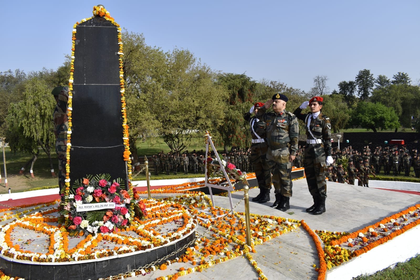 To commemorate the occasion, Brig Gautam Segan, Deputy GOC Tiger Division and Lt Col Rishma Sarin laid wreaths at the Tiger War Memorial, serving Officers, JCOs and Other Ranks of the Division paid homage to the bravehearts for their supreme sacrifice. Two minutes silence was observed in reverence of all the Fallen Heros from the Division.