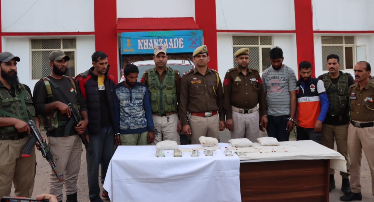 Mendhar: Jammu and Kashmir police in Poonch district alongwith Indian Army foiled a narcotics smuggled bid in Balakote area of Mendhar sub division , arrested four persons with seizure of two vehicles and recovered rupees one lakh cash and four kilograms of Narcotics substance from their possession.