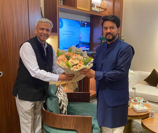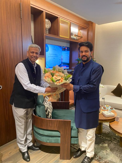 Union Minister Anurag Thakur arrives in Dubai to participate in Media & Entertainment Fortnight at India Pavilion in Dubai Expo 2020.