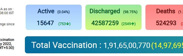 COVID19 | India reports 1,829 fresh cases, 2,549 recoveries, and 33 deaths in the last 24 hours. Nation By Editor Last updated May 18, 2022 108 Share Total active cases are 15,647. Daily positivity rate 0.42% 108 Share
