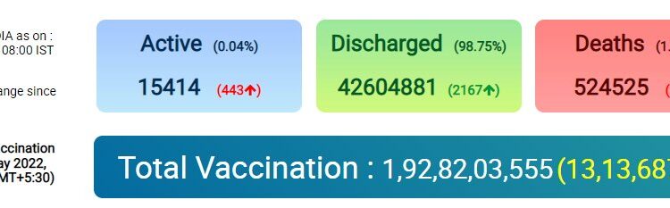 2,628 new COVID19 cases in India today; Active cases at 15,414 Nation By Editor Last updated May 26, 2022 139 Share 139 Share