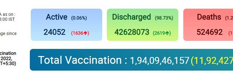 COVID19 | India reports 4,270 fresh cases, 2,619 recoveries, and 15 deaths in the last 24 hours. Nation By Editor Last updated Jun 5, 2022 163 Share Total active cases are 24,052. 163 Share