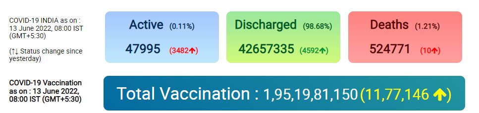 India reports 8,084 COVID19 cases and 10 deaths. Active cases rise to 47,995. Daily positivity 3.24% Nation By Editor Last updated Jun 13, 2022 111 Share 111 Share