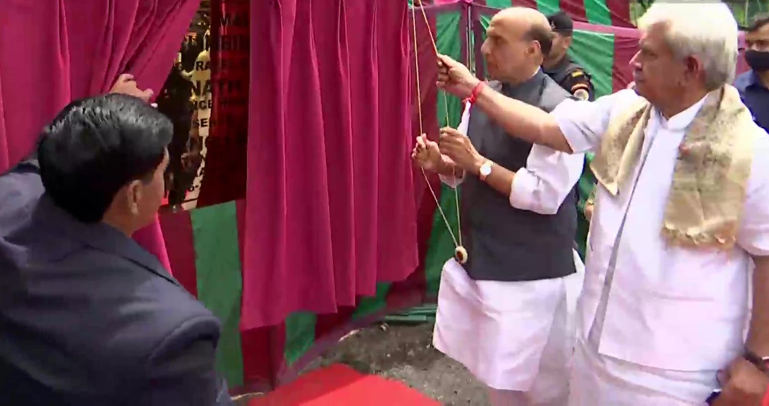 Jammu and Kashmir | Defence Minister Rajnath Singh and Lt Guv Manoj Sinha inaugurated the boulder climbing wall and the Himalayan Museum at Jawahar Institute of Mountaineering and Winter Sports, in Pahalgam