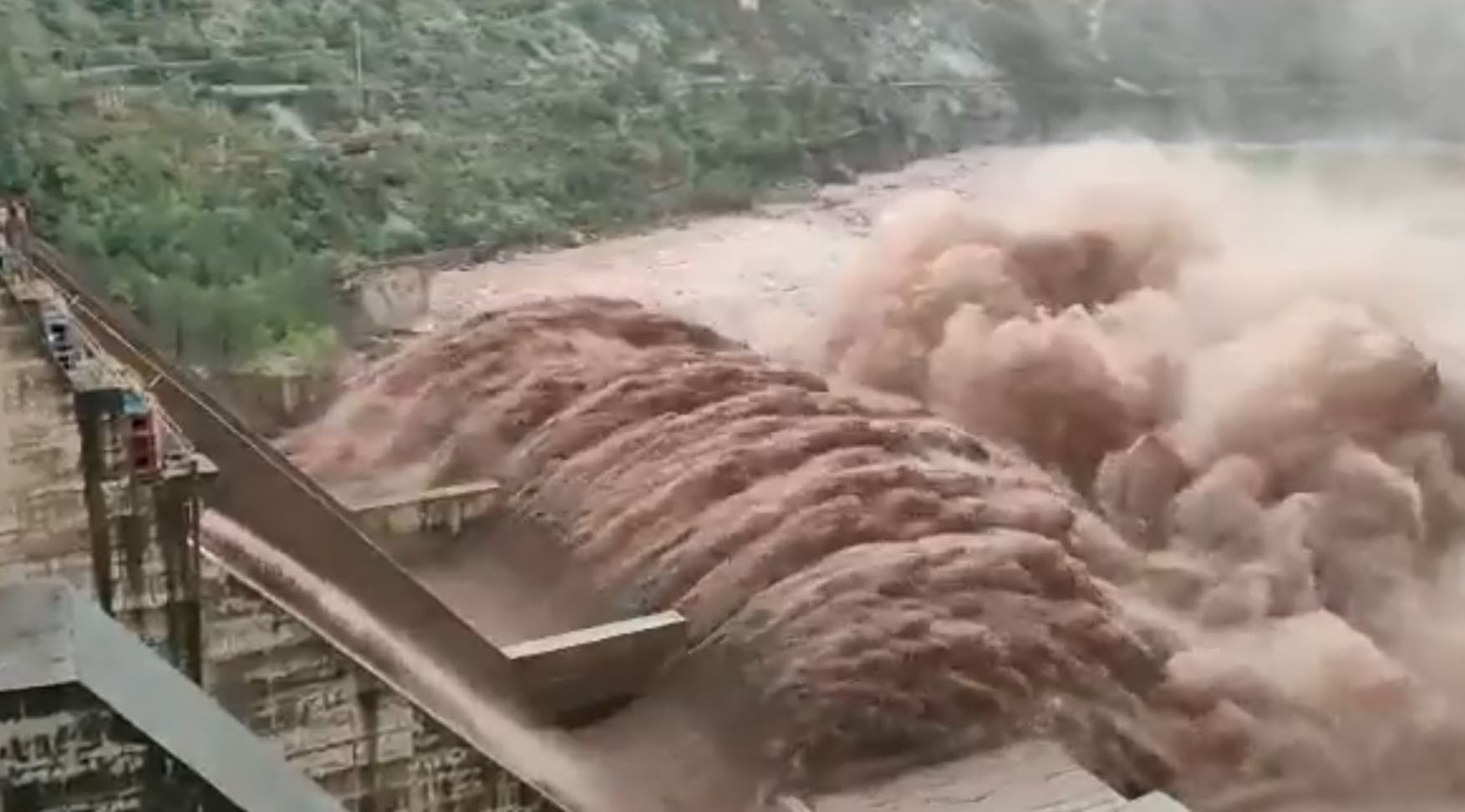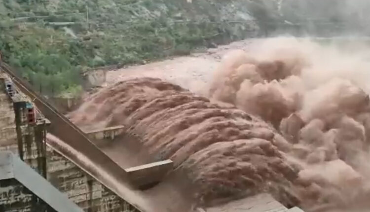 #JammuAndKashmir | Due to continuous rainfall in the region & heavy inflow of water in #Chenab river, #Salal #Dam authorities releases an enormous amount of water as they conduct emergent reservoir flushing in Reasi district.