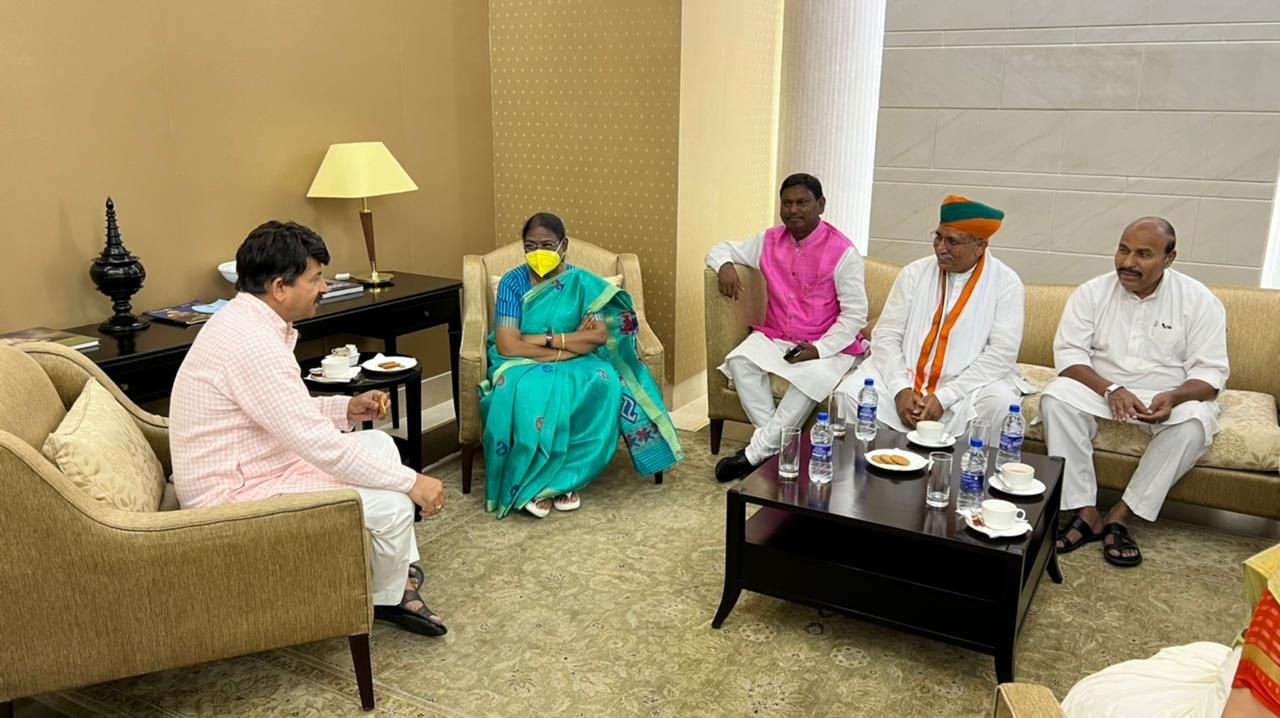 Union Ministers Arjun Munda, Arjun Ram Meghwal and Dr. Virendra Kumar & BJP leader Manoj Tiwari meet NDA’s Presidential candidate Droupadi Murmu at Delhi airport. Nation By Editor Last updated Jun 23, 2022 174 Share 174 Share
