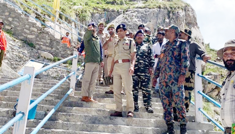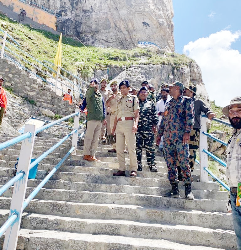 J&K | IGP Kashmir Vijay Kumar along with SSP Anantnag visited #Amarnath holy cave and conducted security review of the deployment of forces on the ground. He physically inspected all deployments and gave further instructions for better coordination and joint efforts.