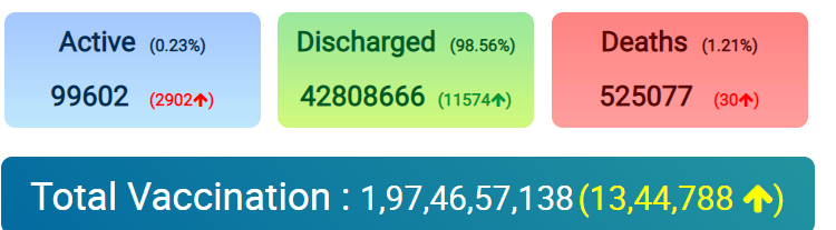 COVID19 | India reports 14,506 fresh cases and 30 deaths in the last 24 hours.