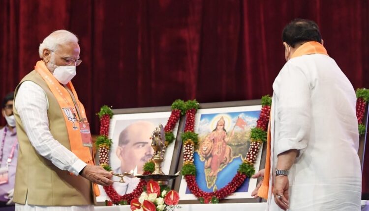 Prime Minister Narendra Modi with party colleagues at the National Executive meeting of BJP in Hyderabad, Telangana