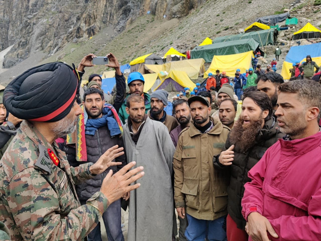 Jammu & Kashmir: Chinar Corps Commander Lt Gen ADS Aujla reaches the cloudburst-affected areas near Amarnath cave where the rescue operations are underway