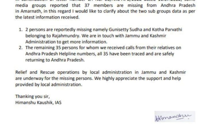 #AmarnathYatra | Factual clarification on missing pilgrims from Andhra Pradesh J&K / Ladakh By Editor Last updated Jul 11, 2022 165 Share 165 Share