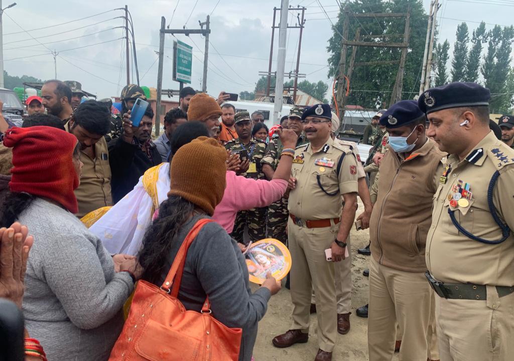 Later on the DGP also took stock of security arrangements at Manigam and Shadipora Transit Camps. On his arrival at the Shaipora transit camp he was received by DIG NKR Udayabhaskar Billa and SSP Bandipora Mohammed Zahid. He interacted with Police and CRPF officers and Jawans who are deployed for security of these Transit camps and yatris.