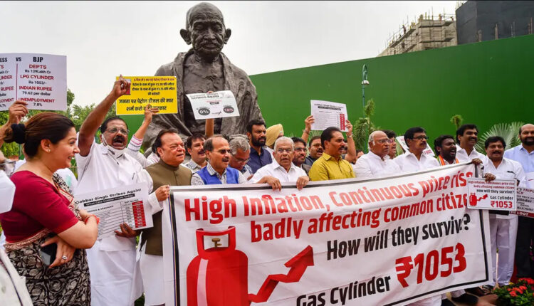 Opposition parties’ MPs display banner and placards during a protest against inflation and decision to increase GST on essential commodities, near the Gandhi statue at Parliament complex, in New Delhi. Nation By Editor Last updated Jul 22, 2022 244 Share 244 Share