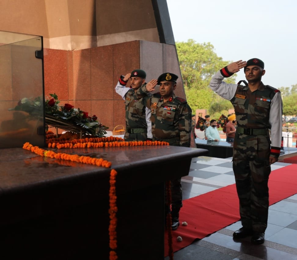 Maj Gen Neeraj Gosain, GOC, Tiger Division, Brig Gautam Segan, Dy GOC and all ranks of the Tiger Division paid tributes to the bravehearts in a solemn wreath laying ceremony at ‘Tiger War Memorial’. Lt Col Rishma Sarin, wife of braveheart Maj Mohit Sharma, AC, SM also paid tributes to the bravehearts.