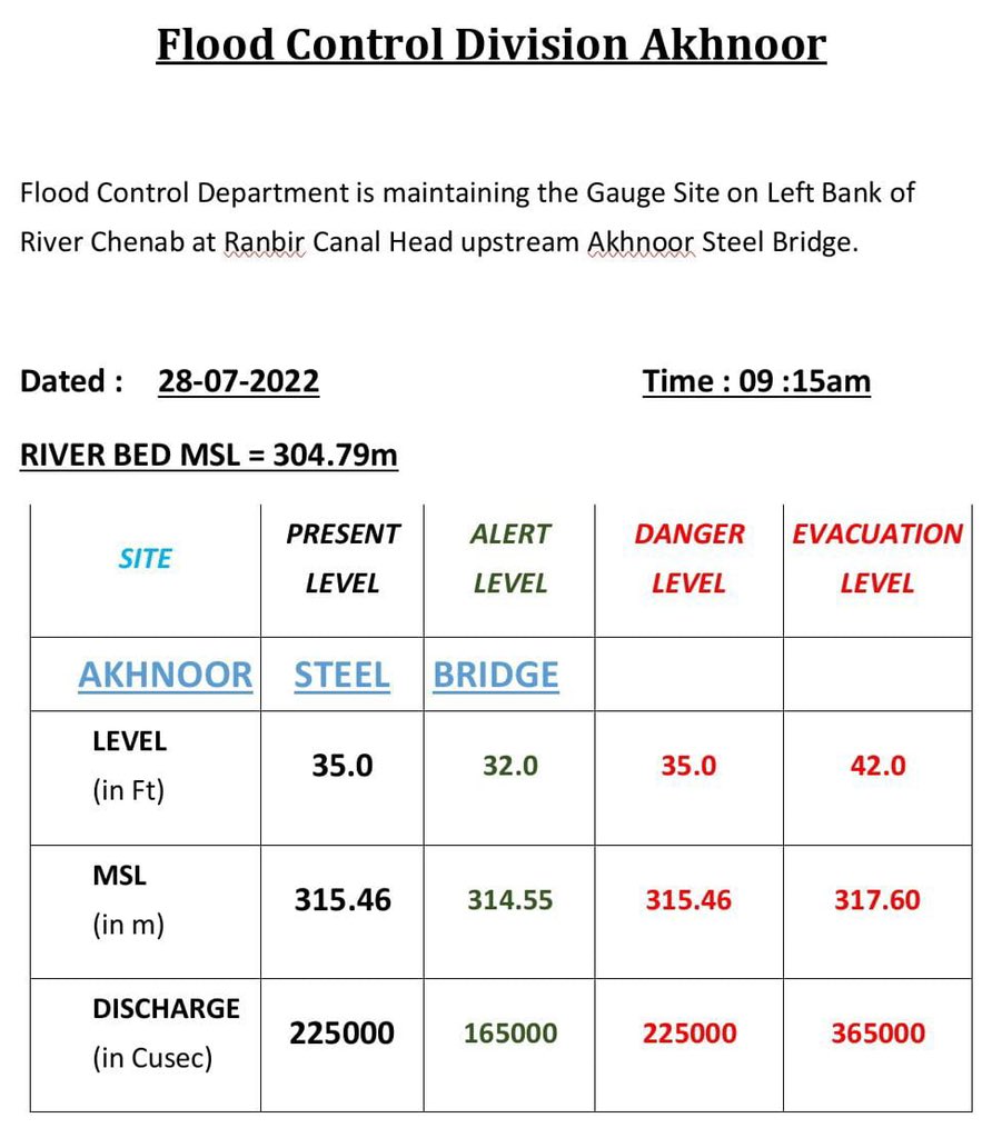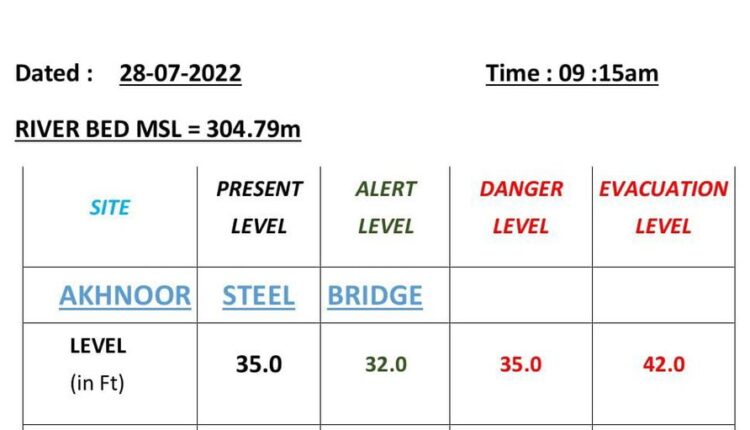 Jammu and Kashmir | River Chenab is at alert level. All are advised to stay away from the Chenab river banks: DC JAMMU J&K / Ladakh By Editor Last updated Jul 28, 2022 161 Share 161 Share