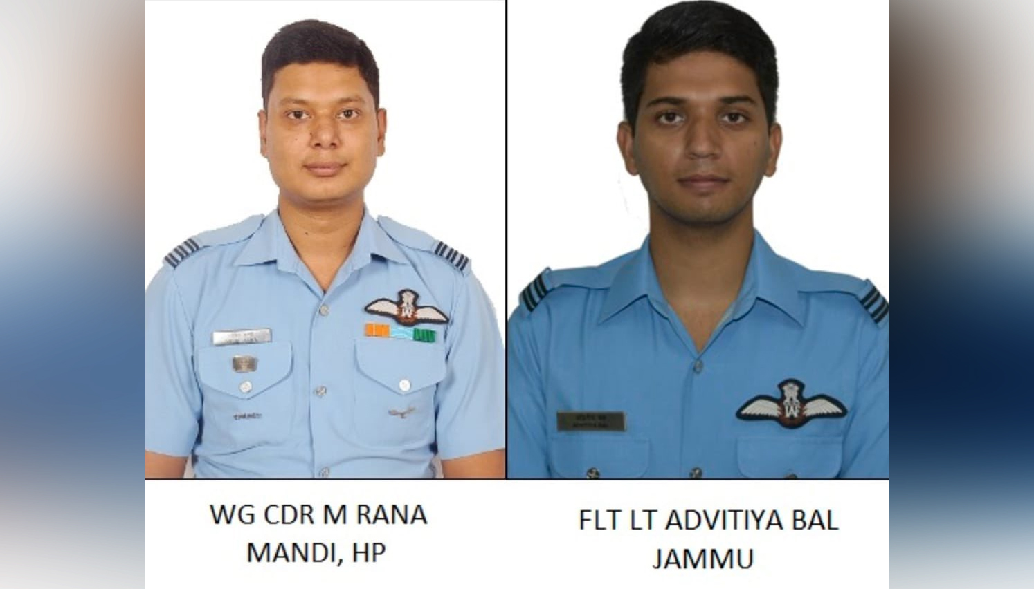 Two Indian Air Force pilots in the crash of MiG21 trainer aircraft last night in Barmer, Rajasthan. Wing Commander M. Rana from Mandi in #HimachalPradesh and Flight Lt. Advitiya Bal from #Jammu.