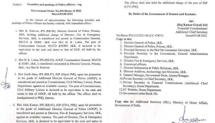 The Jammu and Kashmir Government on Wednesday ordered a minor reshuffle in police department J&K / Ladakh By Editor Last updated Aug 3, 2022 185 Share 185 Share