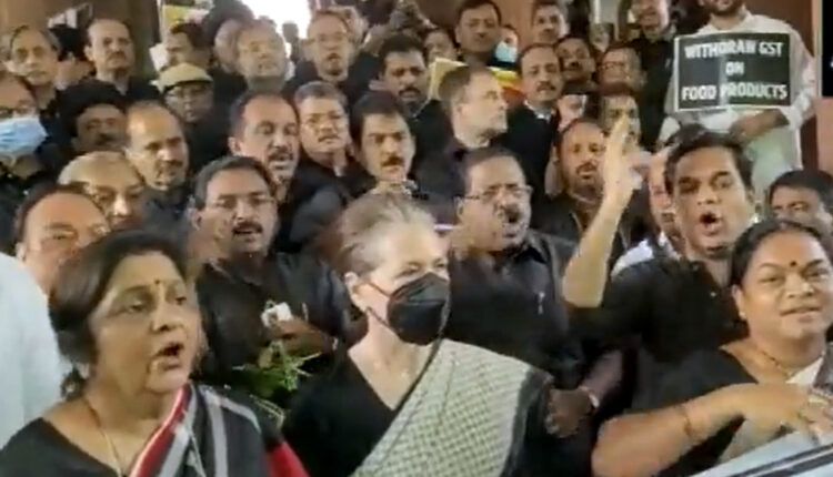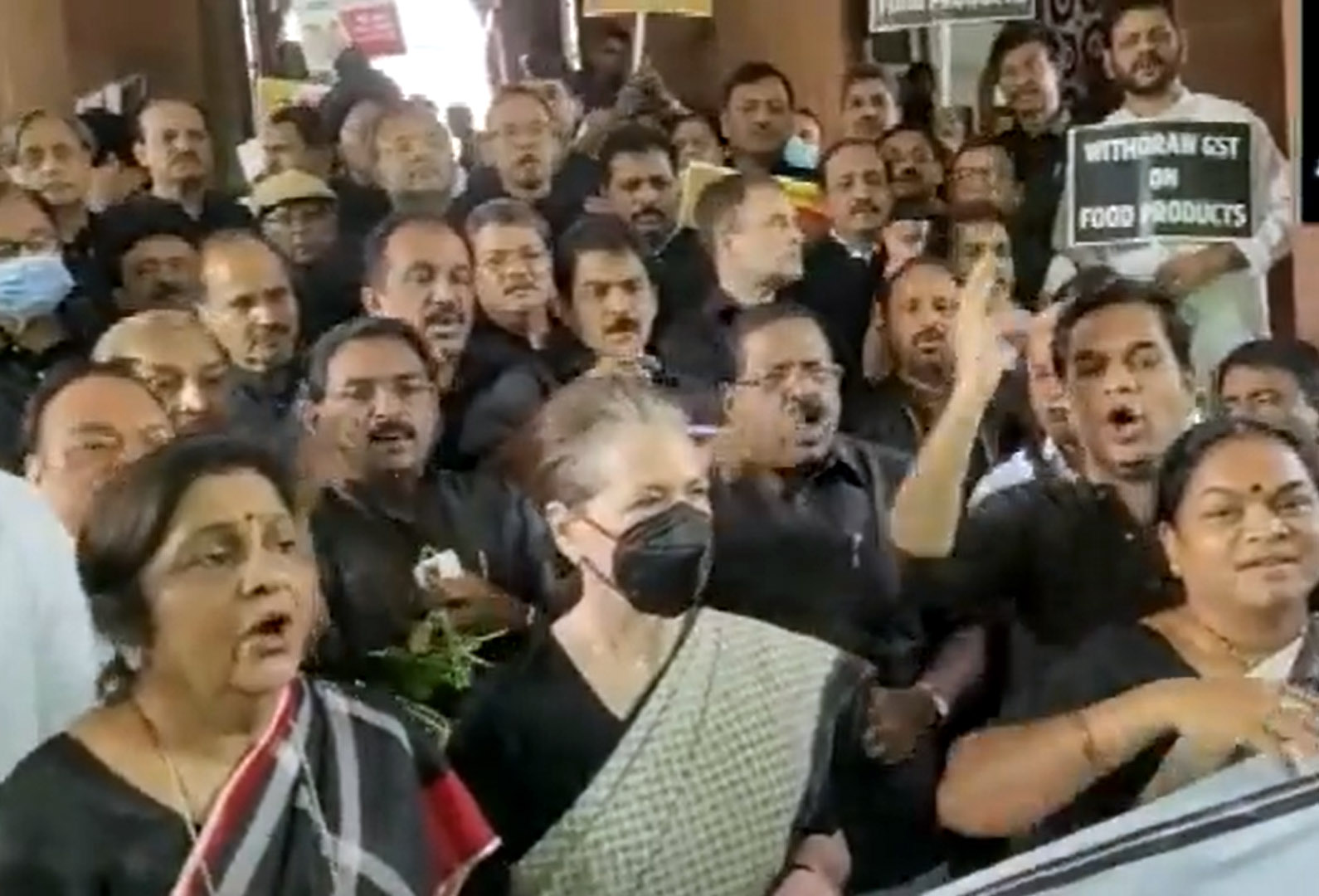 • DELHI | Congress interim president & MP Sonia Gandhi leads protest of party MPs against inflation and unemployment, in Parliament.
